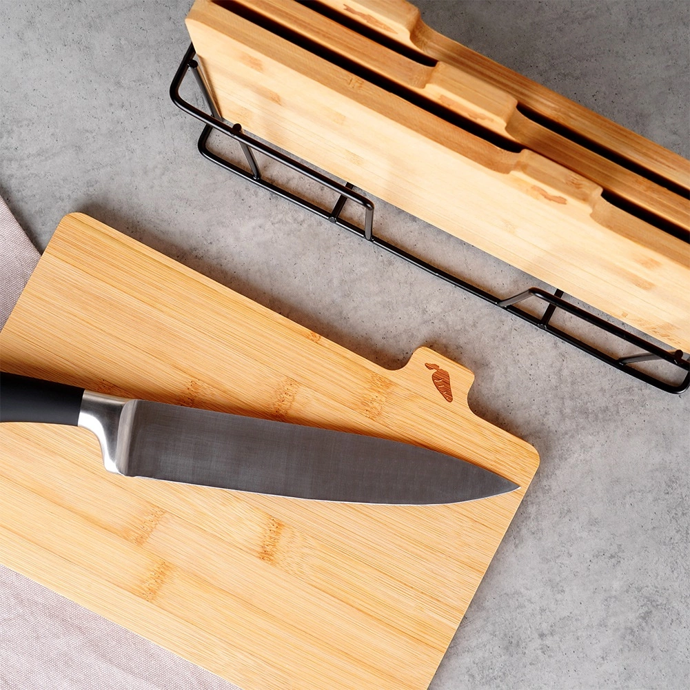 Prečo si vybrať bambus: je ľahký, pevný, šetrný k nožom a prirodzene odolný voči vlhkosti a deformáciám. Vďaka rýchlemu schnutiu a tomu, že nepohlcuje pachy, je ideálny na každodenné varenie. Nadčasový vzhľad a kompaktné rozmery skvele zapadnú do každej kuchyne.