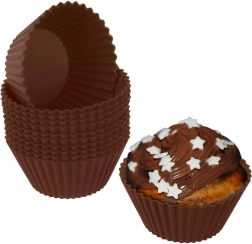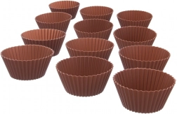 Praktická sada 12 ks silikónových formičiek na muffiny v hnedej farbe. Sú odolné voči teplotám -40 až +220 °C, nelepivé, viackrát použiteľné a vhodné do rúry, mikrovlnky, mrazničky aj umývačky. Vďaka vlnkovanému okraju dodajú zákuskom elegantný tvar a zaistia rovnomerné prepečenie bez potierania tukom či podsypávania múkou.