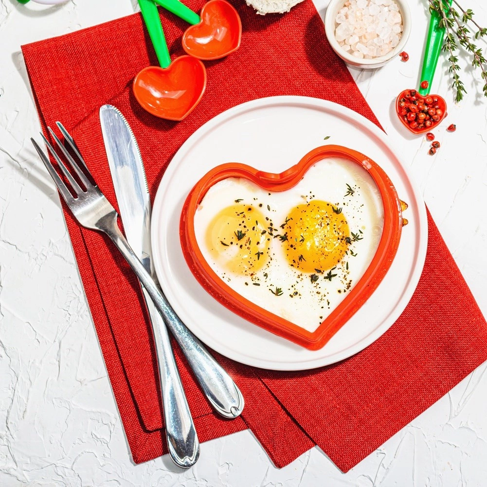 S touto silikónovou formou na vajíčka v tvare srdca ľahko pripravíte volské oká, mini lievance, omelety či ďalšie slané aj sladké dobroty v efektnom tvare. Vďaka nepriľnavému povrchu sa cesto ani vajíčka nelepia a hotové tvary ľahko vyberiete bez nutnosti použiť olej alebo múku.