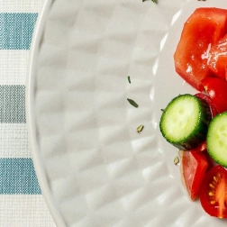 - Dizajn: moderný sivý odtieň a dekoratívny reliéf pre elegantné prestieranie