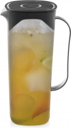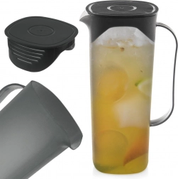 Praktický džbán z kvalitného, ľahkého a odolného plastu v čiernom prevedení skvele poslúži doma, na záhrade aj pri oslavách. Transparentné telo umožní kontrolu hladiny a efektnú prezentáciu nápojov s ovocím či bylinkami. Vďaka kompaktným rozmerom sa pohodlne zmestí do chladničky.