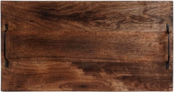 Robustná drevená servírovacia a krájacia doska z mangového dreva s dvoma kovovými úchytmi pre jednoduché prenášanie. Ponúka veľkú pracovnú plochu, odolnosť voči vlhkosti a štýlový postaršený vzhľad ideálny na servírovanie syrov, údenín či pečiva.