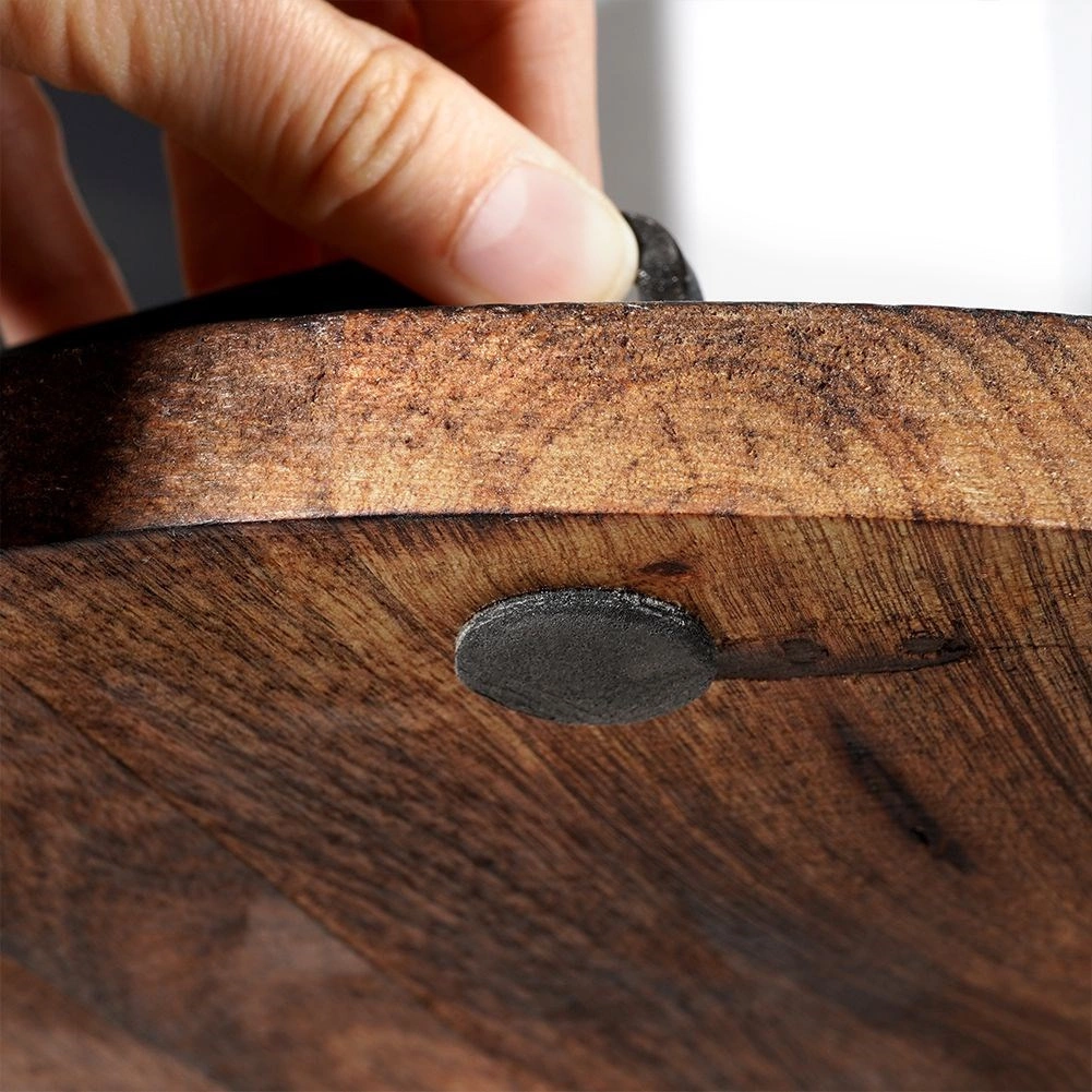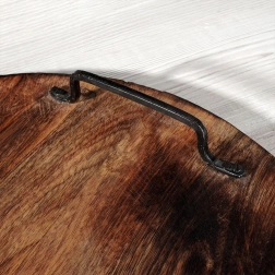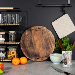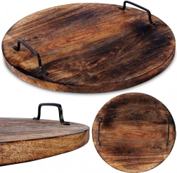 Elegantný okrúhly táck z mangového dreva s priemerom 39–40 cm a hrúbkou 2 cm je ideálny na servírovanie syrov a údenín aj ako pracovná doska. Odolné kovové úchyty uľahčujú prenášanie, mangové drevo je pevné, menej pohlcuje pachy a rýchlo schne. Štýlový rustikálny vzhľad podčiarkne každé stolovanie.
