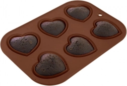 Praktická silikónová forma na pečenie srdiečkových muffinov umožní pripraviť naraz 6 kusov. Vďaka pružnému materiálu je vyklopenie jednoduché, povrch je nepriľnavý, forma je odolná voči teplotám -40 až +220 °C a vhodná do rúry, mikrovlnky, chladničky aj mrazničky. Možno ju umývať v umývačke riadu.