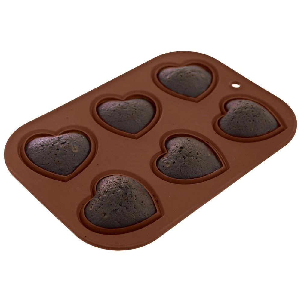Táto obdĺžniková silikónová forma v hnedej farbe je ideálna na prípravu muffinov v tvare srdca, dezertov aj čokolád. Vďaka nepriľnavému povrchu nie je nutné vymastenie, cesto sa nepripáľa a hotové dobroty ľahko vyberiete.
