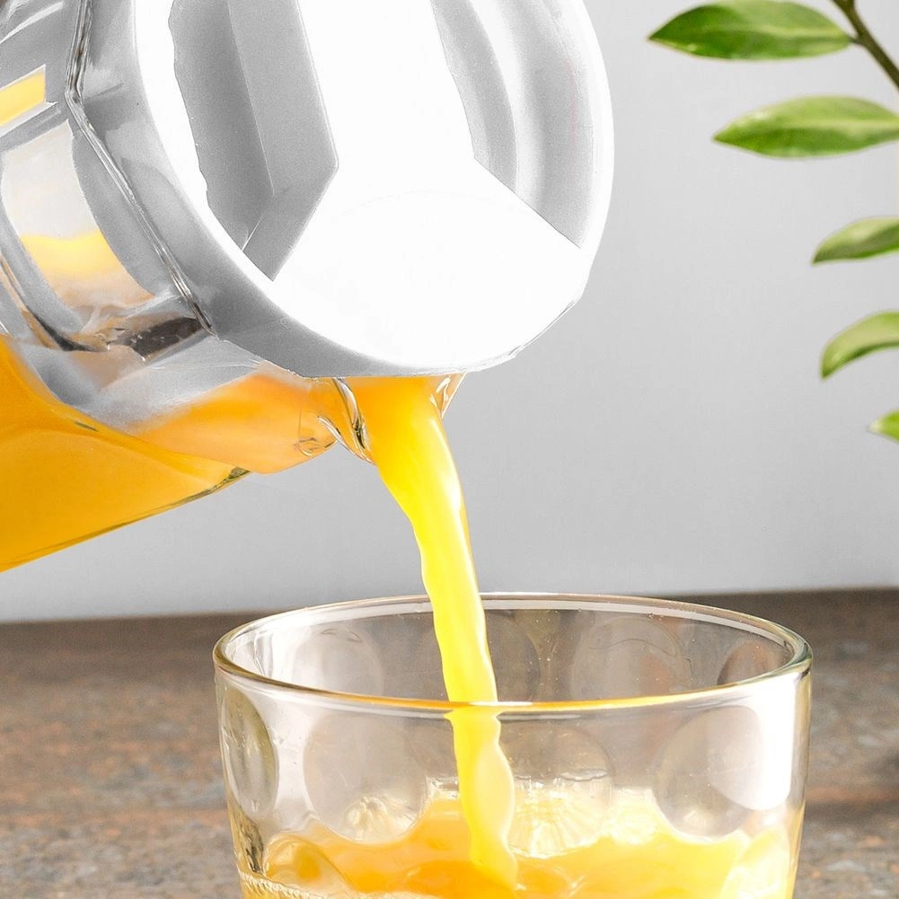 Profilovaný zobáčik a pevné uško zabezpečujú presné a plynulé nalievanie. Ideálne na džúsy, vodu aj limonádu – bez neporiadku na stole.