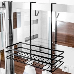Polička ponúka 3 úložné úrovne na šampóny, kondicionéry, mydlá aj väčšie balenia a 4 praktické háčiky – dva vo vnútri na hubky a kefy a dva vonku na uteráky či župany. Jednoducho ju zavesíte na hornú hranu sklenenej steny sprchového kúta a rovnako ľahko kedykoľvek zložíte.