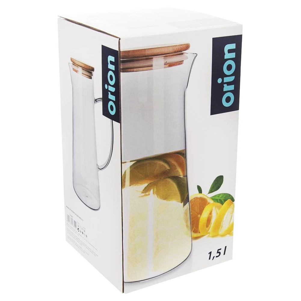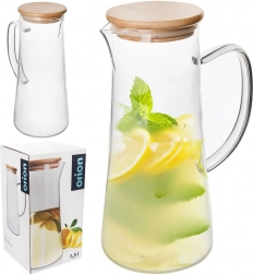 Štýlový džbán s objemom 1,35 l je vyrobený z odolného borosilikátového skla, ktoré zvláda teploty od 20 °C do 230 °C. Vybavený prírodným bambusovým vekom so silikónovým tesnením udrží nápoje dlhšie čerstvé a chránené pred nečistotami či hmyzom. Ergonomické ucho a tvarovaný zobáčik zaručujú bezpečné a presné nalievanie bez kvapiek.