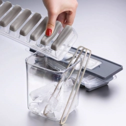Praktická silikónová forma na ľad pripraví až 9 podlhovastých kociek, ktoré sa ľahko zmestia do fliaš. Vďaka elastickému dnu kocky bez námahy vytlačíte, veko zaistí čisté a pohodlné mrazenie bez rozliatia. Vhodná aj pre ovocné šťavy, sorbety a domáce nanuky. Bezpečné materiály, jednoduchá údržba a možnosť umývania v umývačke.