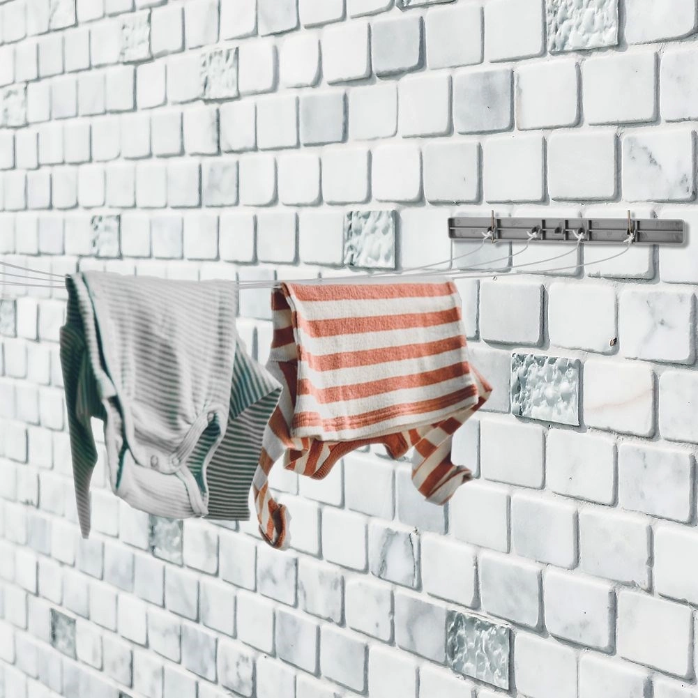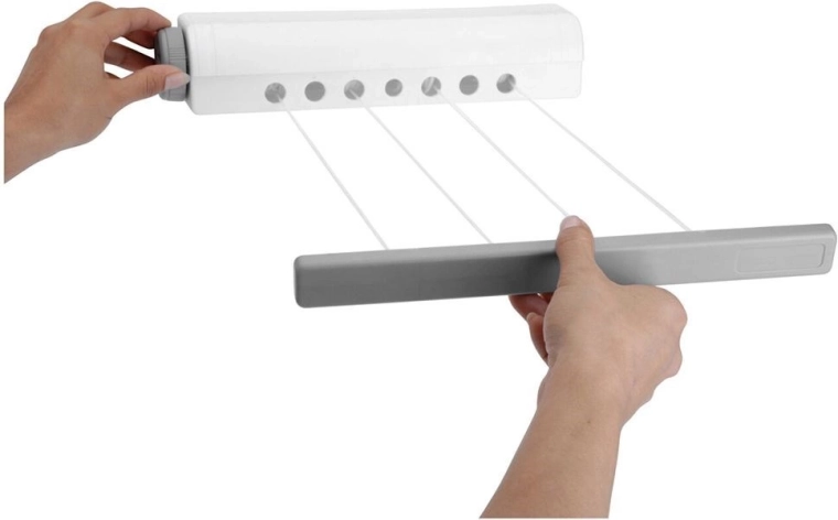 Inštalácia je rýchla a jednoduchá – stačí ho upevniť na protiľahlé steny vo vzdialenosti do cca 360 cm. Po zložení zaberá minimum miesta a zachová čistý vzhľad interiéru. Skvele sa hodí do kúpeľne, práčovne či sušiarne.