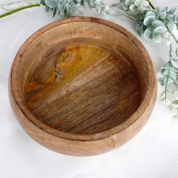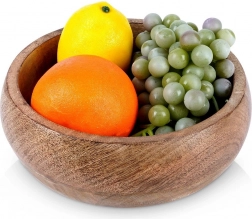 Štýlová drevená miska z exotického mangového dreva s priemerom 18,5 cm a objemom 900 ml je ideálna na servírovanie desiat, ovocia aj dekoratívnych aranžmánov. Vyniká prírodnou kresbou dreva, odolnosťou voči vlhkosti a univerzálnym použitím v kuchyni aj jedálni. Skvelá voľba na každodenné servírovanie aj ako elegantný doplnok interiéru.
