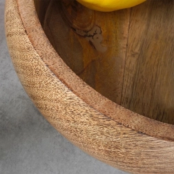 Táto miska z mangového dreva kombinuje funkčnosť a estetiku. Je ideálna na podávanie orieškov, chipsov, popcornu, sušeného aj čerstvého ovocia. Vďaka prírodnému odtieňu a výraznej štruktúre dreva sa hodí k akejkoľvek stolovej zostave a sama o sebe pôsobí ako dekoratívny prvok.