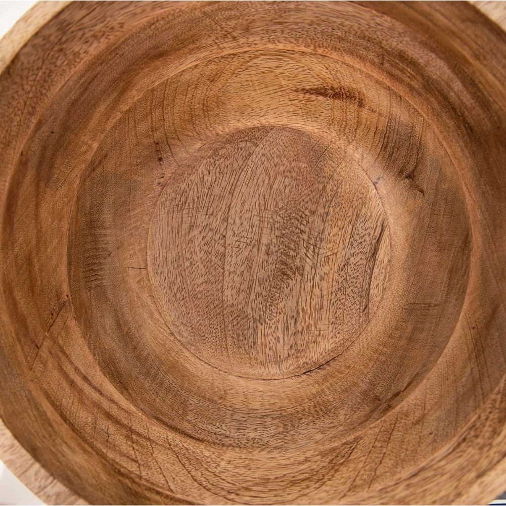 Táto servírovacia miska z kvalitného mangového dreva vyniká prirodzenou kresbou, hnedým odtieňom a dekoratívnymi bielenými žliabkami po obvode. Je dostatočne priestranná pre rodinné šaláty, ovocie či slané a sladké pochutiny a vďaka stabilnému tvaru sa pohodlne používa každý deň.