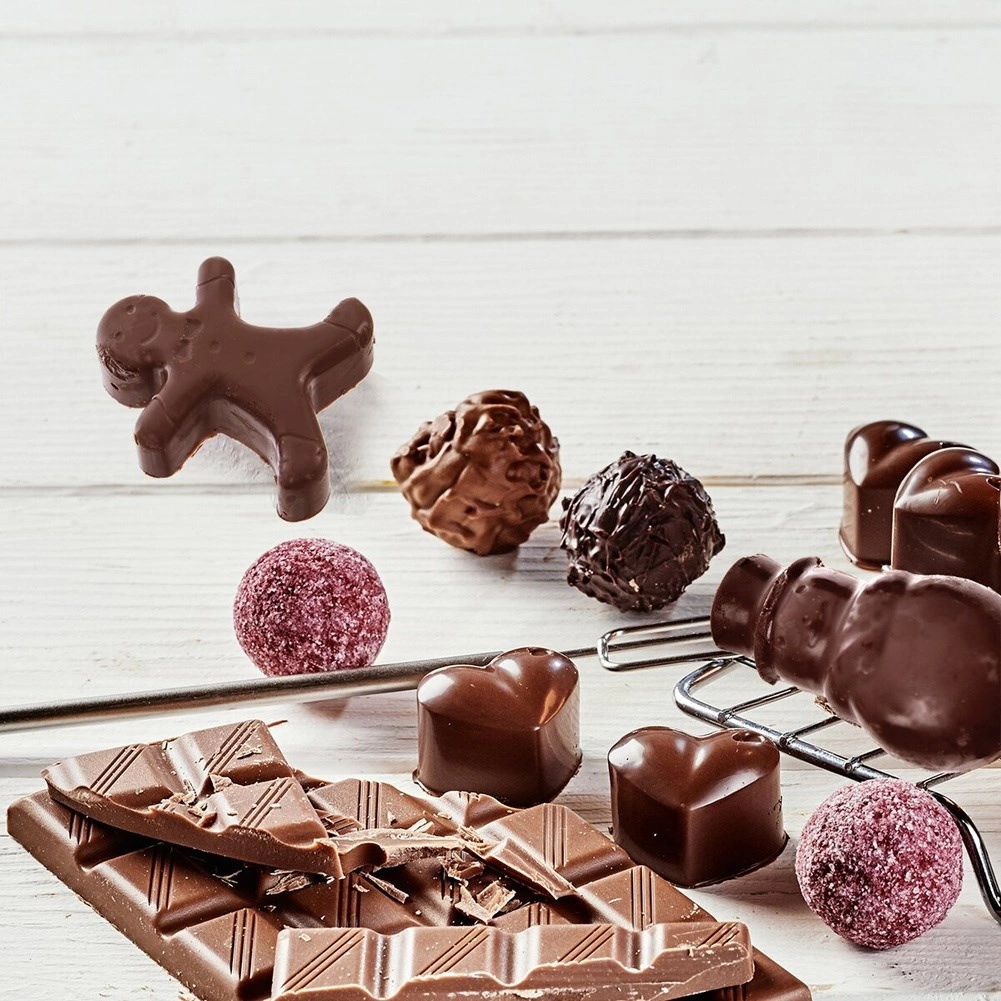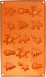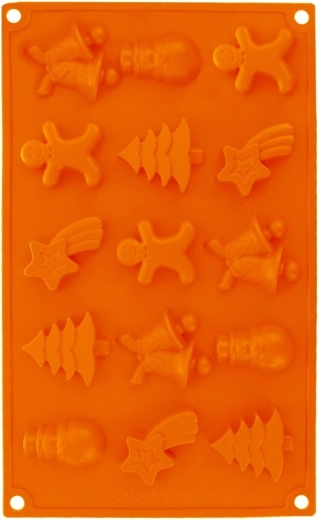 Silikónová forma na pečenie s motívmi Vianoc umožní pripraviť až 15 kusov cukroviniek či praliniek v piatich tvaroch: panáčik, stromček, snehuliak, hviezda a zvonček. Je odolná od -40 °C do +220 °C, vhodná do rúry, mikrovlnky aj mrazničky a možno ju umývať v umývačke. Vďaka nepriľnavému silikónu sa cesto ľahko vyklápa a forma nepohlcuje pachy ani chute.
