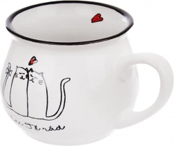 Štýlový keramický hrnček s objemom 300 ml s motívom zamilovaných mačiek. Ponúka pohodlné ucho, je vhodný do umývačky aj mikrovlnky a skvele sa hodí na kávu, čaj aj kakao. Kvalitná keramika v bielej farbe zaisťuje dlhú životnosť a elegantný vzhľad na každom stole.