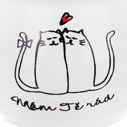 Užite si obľúbený nápoj v hrnčeku, ktorý poteší svojím dizajnom aj praktickosťou. Keramický hrnček s motívom zamilovaných mačiek sa vďaka univerzálnej veľkosti hodí na každodenné používanie doma aj v práci. Jednoduchý, klasický tvar a biela glazúra z neho robia nadčasový doplnok.