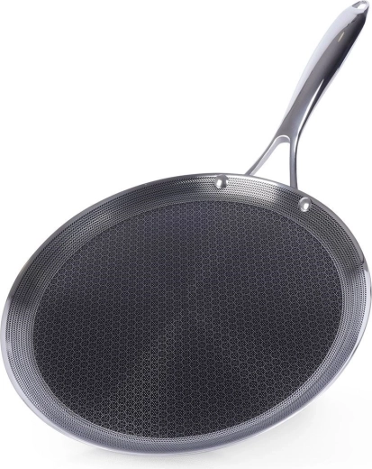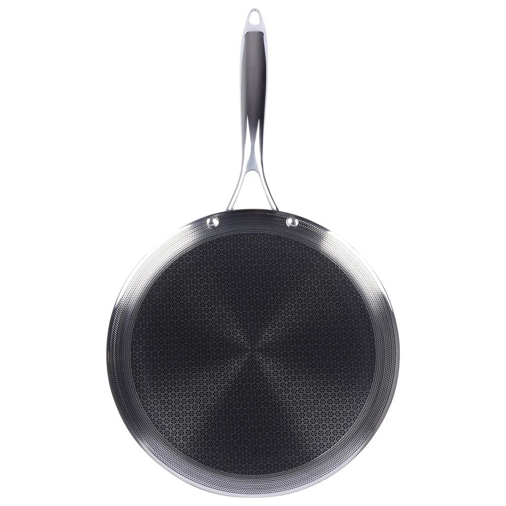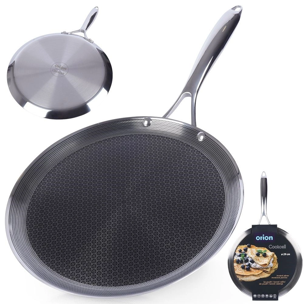 Prémiová palacinková panvica z nehrdzavejúcej ocele s hybridnou nepriľnavou štruktúrou na rýchle a rovnomerné vyprážanie. Vhodná na všetky typy sporákov vrátane indukcie, do rúry až do 260 °C a do umývačky. Odolná proti poškrabaniu, umožňuje použitie kovového náradia a vďaka nízkemu okraju sa skvele otáčajú palacinky, lievance aj omelety.