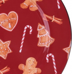 Doprajte svojmu sviatočnému stolu čarovnú atmosféru s týmto dekoratívnym červeným podtáckom s priemerom 33 cm. Vďaka odolnému prevedeniu a vianočnému motívu perníčkov, škorice a lízaniek skvele doplní každé prestieranie. Je univerzálny – poslúži aj ako tácka alebo základňa pre sviatočné aranžmány, a ľahko sa udržiava vlhkou handričkou.