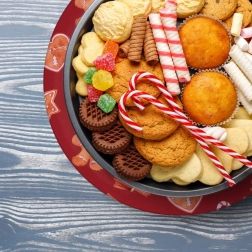 - Elegantný vianočný dizajn s motívom perníčkov, škorice a lízaniek