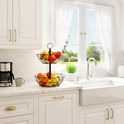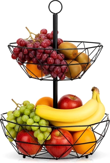Dvojúrovňový drôtený kôš je skvelým riešením pre prehľadné a hygienické skladovanie ovocia, zeleniny aj drobností v kuchyni či jedálni. Otvorená konštrukcia podporuje cirkuláciu vzduchu, takže ovocie zostáva dlhšie svieže, a vertikálne usporiadanie šetrí cenné miesto na pracovnej doske.