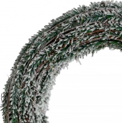 Zelené ihličie s jemným bielym postrekom napodobňuje čerstvo zasnežené vetvičky pre autentický zimný vzhľad.