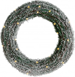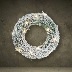 Vytvorte kúzelnú sviatočnú atmosféru s dekoratívnym vencom, ktorý verne imituje zasnežené ihličie a jemne žiari vďaka 30 teplým LED. Vďaka napájaniu na batérie ho umiestnite kamkoľvek – na dvere, nad krb, do okna aj na policu – bez viditeľných káblov a zložitej inštalácie.