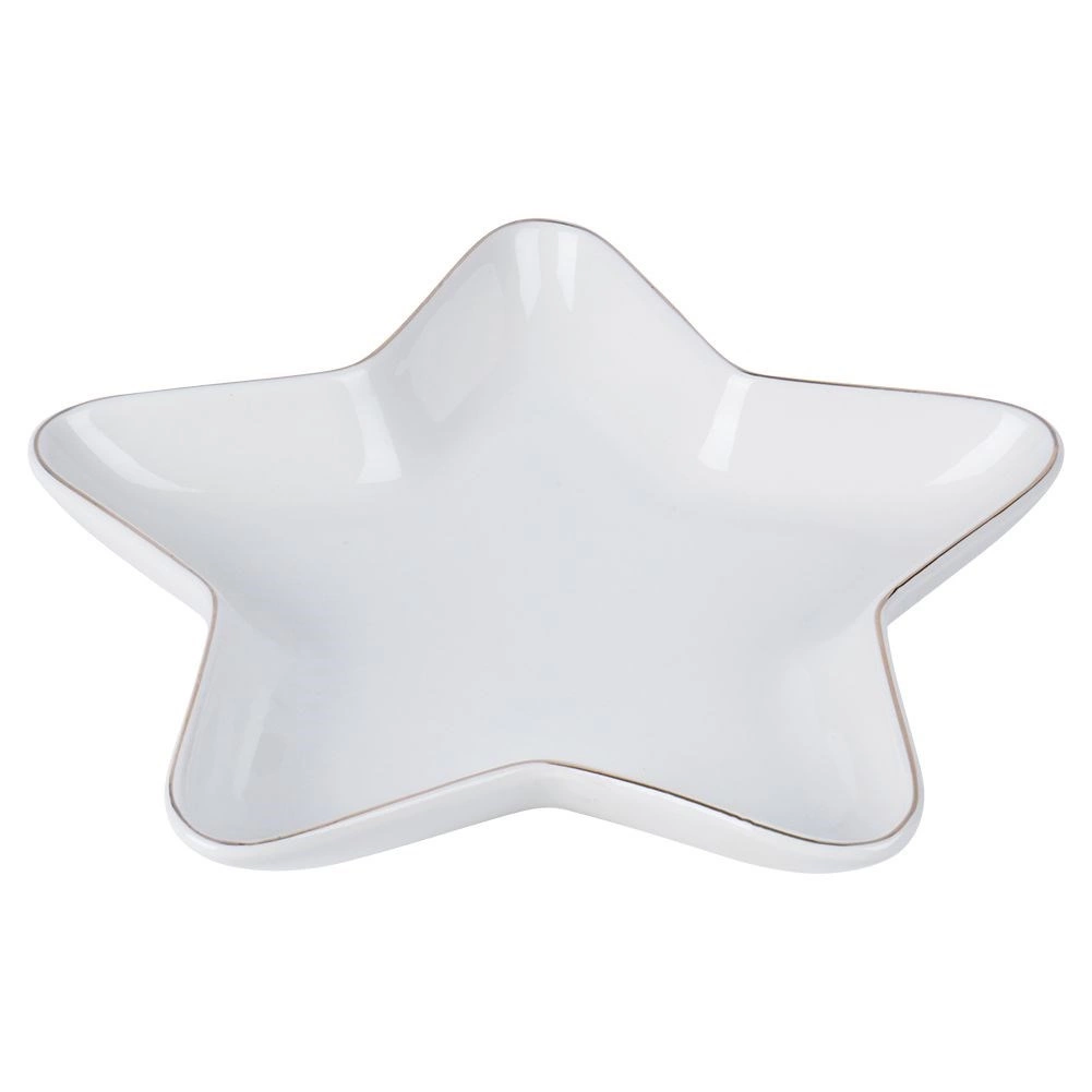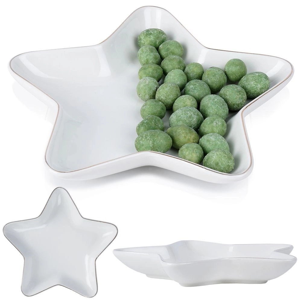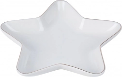 Vytvorte na stole sviatočnú atmosféru s týmto dekoratívnym tanierom v tvare hviezdy. Kvalitný porcelán v bielej farbe a decentný dizajn podčiarknu servírovanie cukroviniek, orieškov, jednohubiek aj drobných dezertov. Tanier je pevný, odolný a vďaka praktickým rozmerom sa hodí do každej domácnosti.