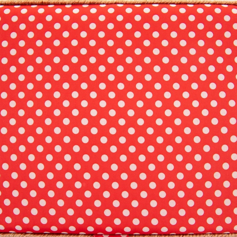 Červená látka s bielymi bodkami a dekoratívne opletenie dodajú šitiu šmrnc a košík krásne zapadne do každej domácej dielne.