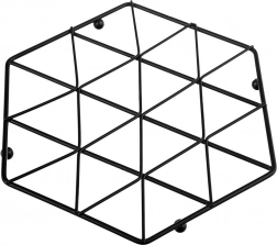Univerzálna kovová podložka pod horúce nádoby je skvelým pomocníkom do každej kuchyne. Má efektný šesťhranný dizajn, ktorý sa hodí do moderných aj klasických interiérov. Štyri nožičky v tvare guličiek zabezpečujú pevnú stabilitu a dostatočnú medzeru medzi nádobou a povrchom stola, takže spoľahlivo chráni pracovnú dosku pred teplom a poškodením.