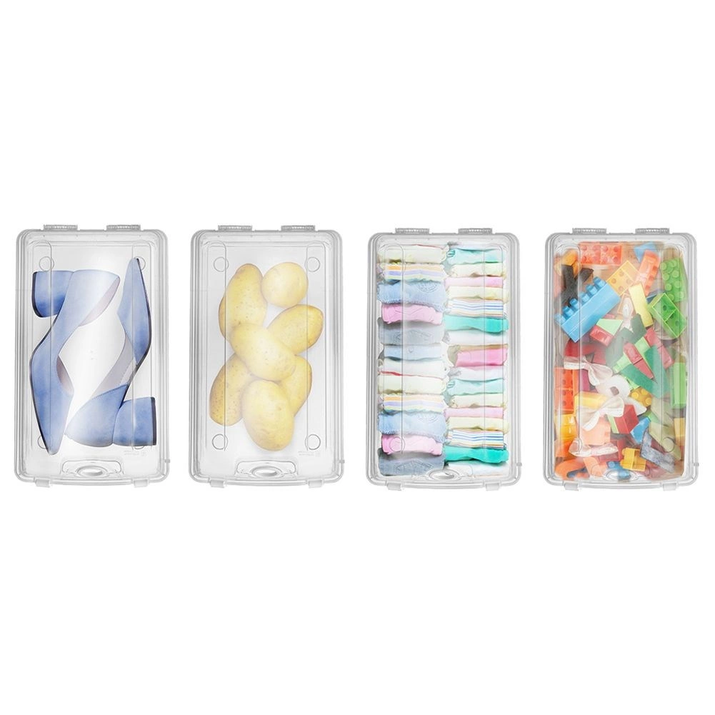 Uzatvárateľný box na topánky je skvelou voľbou pre prehľadné a hygienické uloženie obuvi, oblečenia, hračiek či dokumentov. Priehľadné steny umožnia okamžite vidieť, čo je vo vnútri, bez nutnosti otvárania. Pevné bočné klipy držia veko spoľahlivo na mieste a vetrací otvor obmedzuje vlhkosť aj zápach.