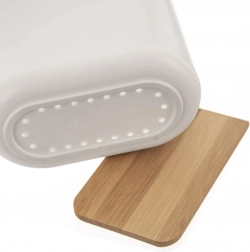 - Plast (telo), bambus (vyberateľná priečka), silikón (protišmyková základňa)