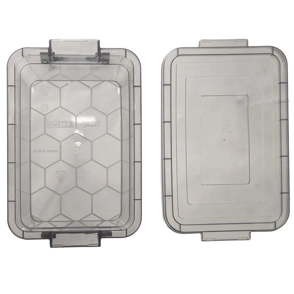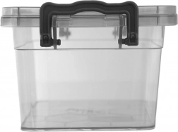 Praktický úložný box z kvalitného, zdravotne nezávadného plastu v tmavosivom, transparentnom prevedení umožní okamžitú kontrolu obsahu bez nutnosti otvárania. Vďaka pevnému veku s dvoma bočnými klipsami zostane všetko bezpečne uzavreté a chránené pred vlhkosťou a nečistotami.