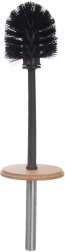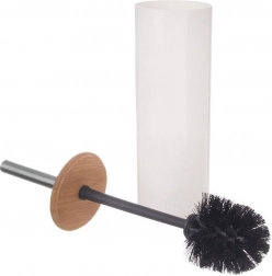 Táto praktická a štýlová WC súprava ponúka všetko, čo v kúpeľni potrebujete: stabilný stojan s uzavretým dizajnom, odolnú kefku s hustým čiernym vláknom a pohodlnú rukoväť z matnej nehrdzavejúcej ocele. Prírodné bambusové veko dodáva teplý akcent a zároveň kryje kefku pre čistý vzhľad interiéru.