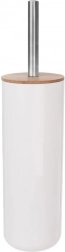 Minimalistický biely stojan s prírodným bambusovým vekom elegantne skryje kefku a udrží vašu kúpeľňu vizuálne čistú.