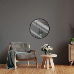 Okrúhly tvar a tenký čierny rám vytvárajú moderný akcent, ktorý opticky zväčšuje a presvetľuje miestnosť.