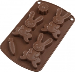 Silikónová forma s motívmi zajačikov, mrkvičky a kvetiny na jednoduchú výrobu praliniek, čokoládok aj sušienok. Je odolná od -40 °C do +220 °C, vhodná do rúry, mikrovlnky aj mrazničky a možno ju umývať v umývačke. Vďaka nepriľnavému povrchu hotové tvary ľahko vyberiete a forma sa jednoducho čistí.