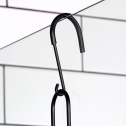 Háčik potiahnutý gumou pevne drží na sklenenej zástene či tyči a zároveň chráni povrch pred poškodením.