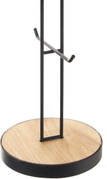 Kombinácia čierneho kovu a masívnej kruhovej drevenej základne zaisťuje stabilitu a dlhú životnosť pri každodennom používaní.