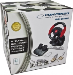 Esperanza High Octane je kompaktný herný volant vhodný pre počítače a konzoly PlayStation. Zažite skutočný pocit z jazdy vďaka samostatnému modulu s pedálmi plynu a brzdy.