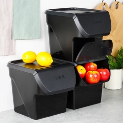 Udržte kuchyňu prehľadnú a suroviny dlhšie čerstvé. Box s rozmermi 34 × 26 × 27,5 cm pojme cibuľu, zemiaky, cesnak aj ovocie. Predné výklopné veko umožní rýchle dopĺňanie aj odoberanie bez nutnosti dávať dole celý kryt, ktorý je v prípade potreby možné úplne sňať.