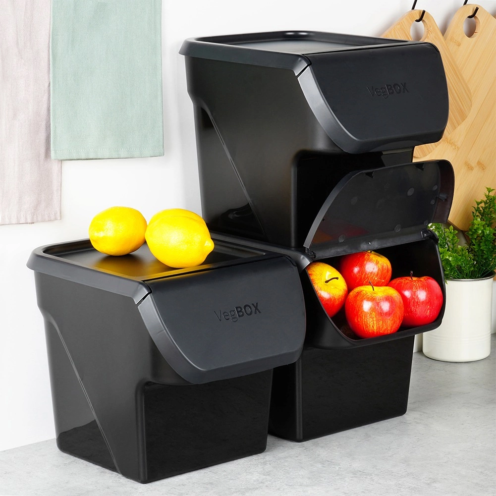 Obdĺžnikový tvar a stohovateľný dizajn šetria miesto a udržiavajú ovocie a zeleninu prehľadne uložené.