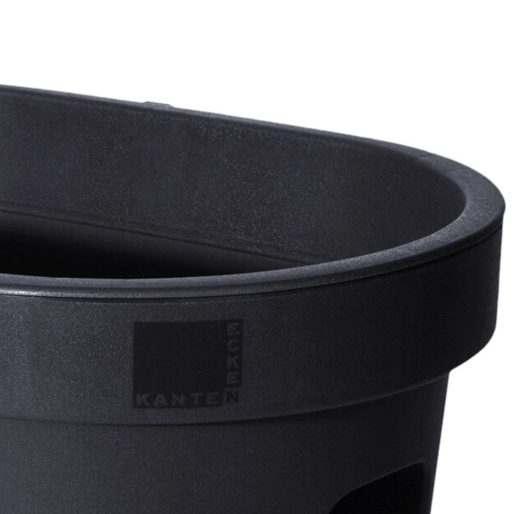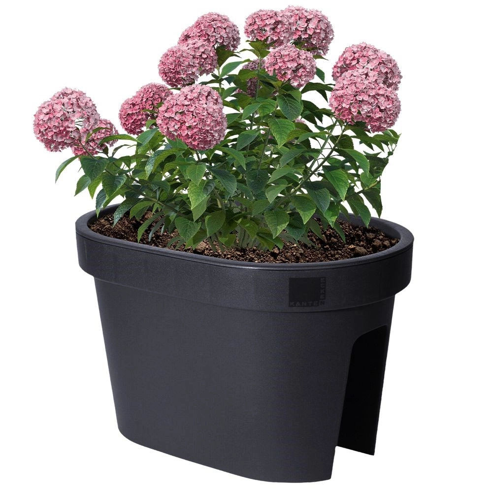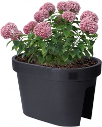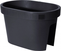 Závesný kvetináč s centrálnym výrezom na bezpečné usadenie na zábradlie umožní pestovať rastliny aj v malom priestore. Moderné čierne prevedenie vynikne na balkóne, terase aj v záhrade a dodá výsadbe čistý, elegantný vzhľad.