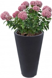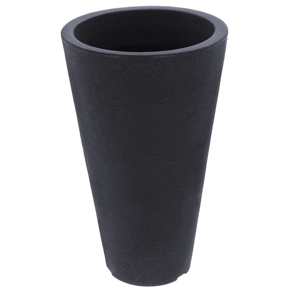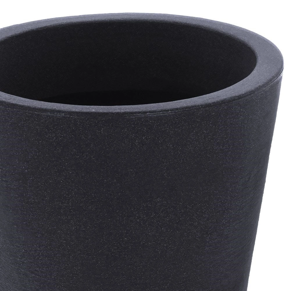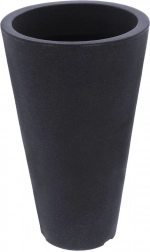 Tento vysoký kónický kvetináč v elegantnom antracite vyniká minimalistickým vzhľadom a univerzálnym použitím. Materiál imitujúci kameň je ľahký, pevný a ľahko sa čistí – nečistoty jednoducho opláchnete vodou.