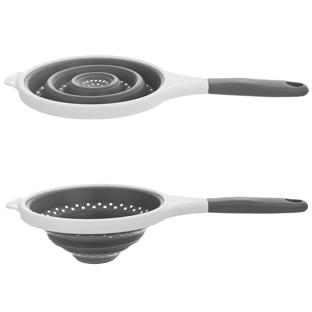 Praktické skladacie sitko z kvalitného silikónu s priemerom 25,5 cm a dlhou rukoväťou je ideálne do každej kuchyne aj na cesty. Vďaka skladacej konštrukcii šetrí miesto, je odolné do 100 °C, má pohodlné držanie a ľahko sa čistí – vrátane umývania v umývačke. Perfektné na cedenie cestovín, zeleniny aj ovocia.