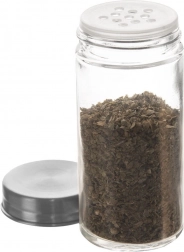 Korenička má kompaktné rozmery 9,5 × 4,5 cm a objem 100 ml, takže sa ľahko vojde do stojana na koreniny aj kuchynskej zásuvky. Sklenenú nádobku možno umývať v umývačke (bez dávkovača a viečka), čo uľahčuje údržbu a zachovanie hygieny. Skvele sa hodí na soľ, korenie, bylinky aj zmesi korenín.
