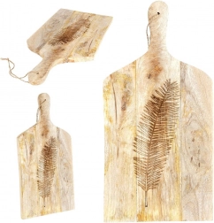 Objavte nadčasové prkno z mangového dreva, ktoré v kuchyni zvládne každodenné krájanie aj efektné servírovanie. Z jednej strany zdobí plochu elegantný reliéf listu, ktorý dodá stolovaniu prírodný šmrnc. Robustná hrúbka 2 cm zaisťuje stabilitu a dlhú životnosť, zatiaľ čo jemná kresba dreva zvýrazní jedinečný vzhľad každého kusu.
