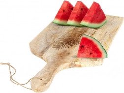 Vďaka veľkorysým rozmerom pohodlne nakrájate mäso, pečivo, zeleninu aj ovocie a následne na tom istom prkne naservírujete syry, údeniny či snacky. Praktické madlo s otvorom a šnúrkou umožňuje jednoduché zavesenie a prenášanie. Mangové drevo je prirodzene odolné voči vlhkosti, nedeformuje sa, nepohlcuje pachy a rýchlo schne.