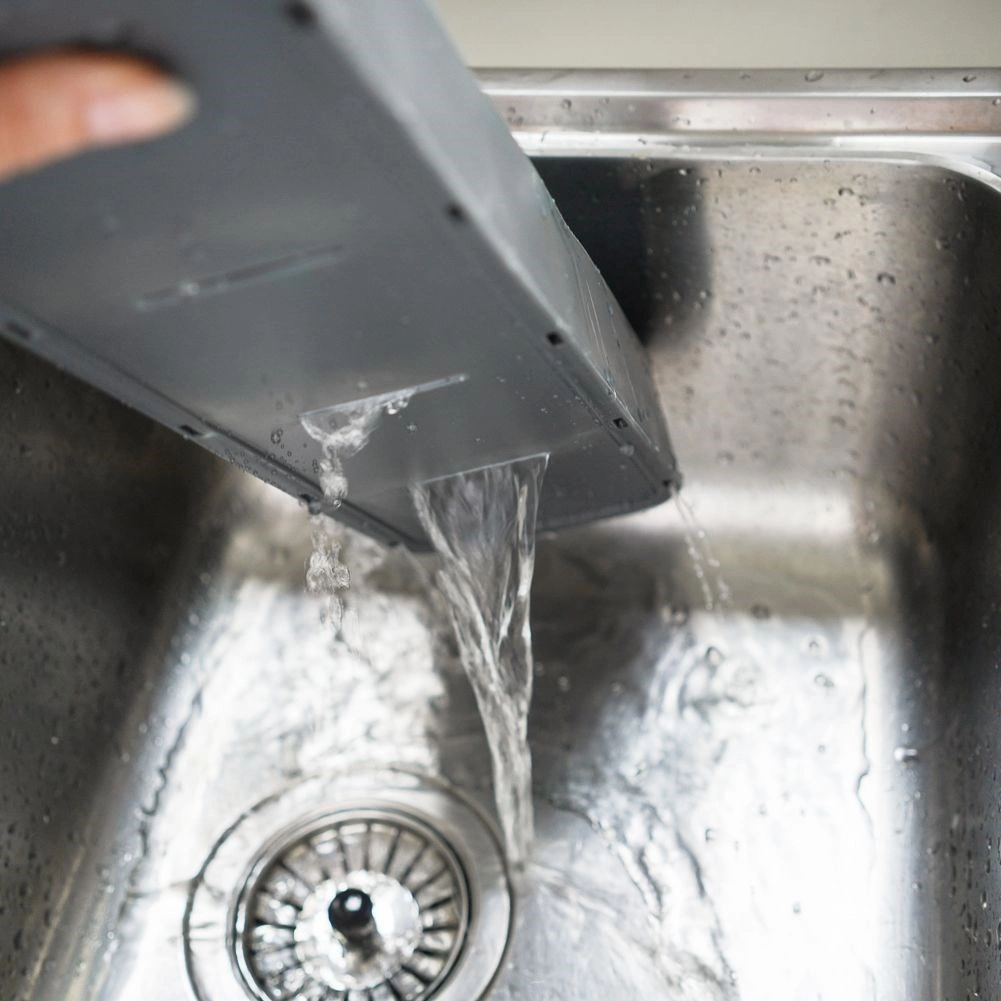 Pevný plast v sivom prevedení odolá každodennému používaniu a možno ho ľahko opláchnuť či utrieť do čista.