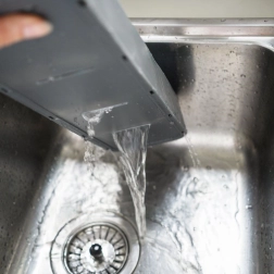 Hladký, pevný plast v sivej farbe je nenáročný na údržbu a vydrží každodenné používanie.