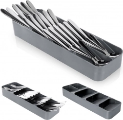 Odolné prevedenie z kvalitného plastu v elegantnej sivej farbe zabezpečuje jednoduché čistenie aj dlhú životnosť. Organizér je ideálny na ukladanie lyžíc, vidličiek, nožov aj malých lyžičiek a vidličiek, pričom každý kus má svoje miesto.